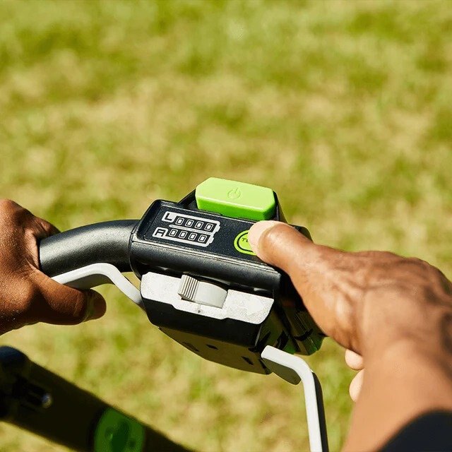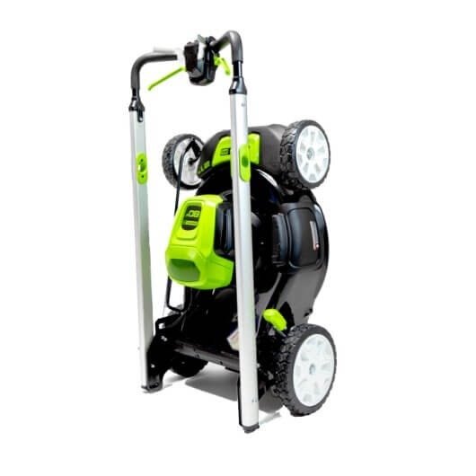 CONVENIENT STORAGE Adjustable handle positions to suit your height and ergonomic easy-to-use user controls guarantee ultimate comfort. Plus, use up to 70% less space in your garage with EZ Fold™ aluminum handles for compact vertical storage.
