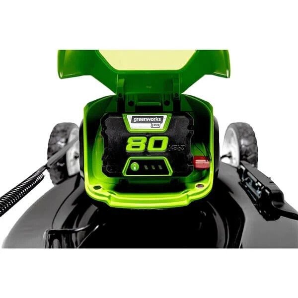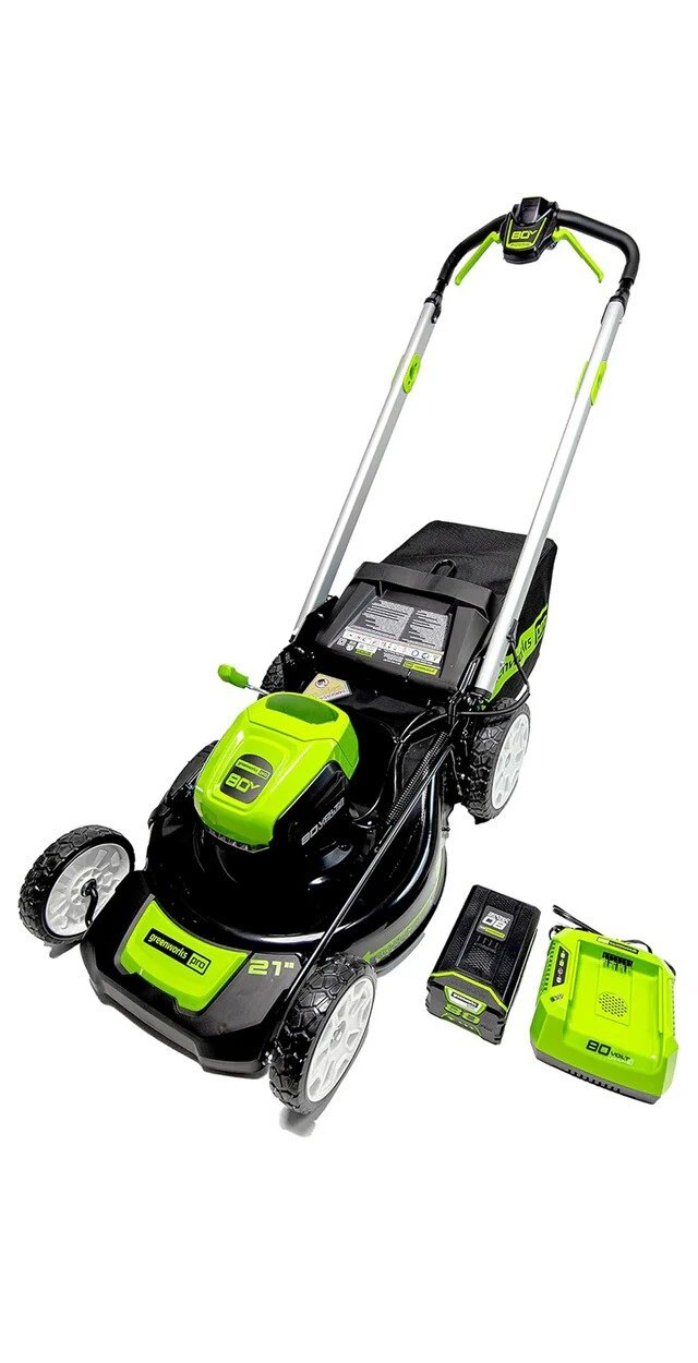 Welcome to a Life. Powered. by Greenworks. When it comes to outdoor power equipment, you put the emphasis on “power.” And why not? For homeowners like you who take on jobs big or small, you need a cordless battery operated lawnmower with heavy grade construction and long-lasting peak performance. The Greenworks Pro 80V family of tools meet the challenge with a universal battery system that works across multiple products, high-efficiency motors, and cutting edge features. Kick gas to the curb and go green with no fumes, no mixing, no maintenance, and no pull cords. Let Greenworks help you take the work out of yard work. Keep your lawn pristine with the Greenworks 80V 21" Brushless Self-Propelled Lawn Mower, 4.0Ah Battery and Charger. This lawnmower features a steel deck, 7 cutting heights, innovative SmartCut technology and folding handles for compact storage. Plus, all Greenworks Pro 80V tools feature a 4 Year Limited Tool & Battery Warranty to ensure your investment is protected. -