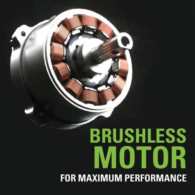 BRUSHLESS: Highly efficient 1.1kW brushless motor provides increased torque, longer run times, quiet operation, and extended motor life. Quickly clears driveways, sidewalks, patios and more with a 12" clearing path and a 4" clearing depth.