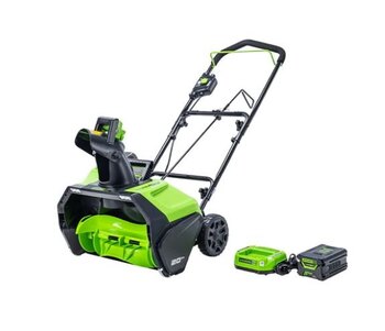 Greenworks 60V Snow Thrower is ideal for smaller properties and clears snow easily without the hassle of gas or a cord. Powered by an 60V 4Ah lithium-ion battery that is compatible across the entire 60V Greenworks program. For homeowners who want the benefits of going cordless for everyday yard work. |