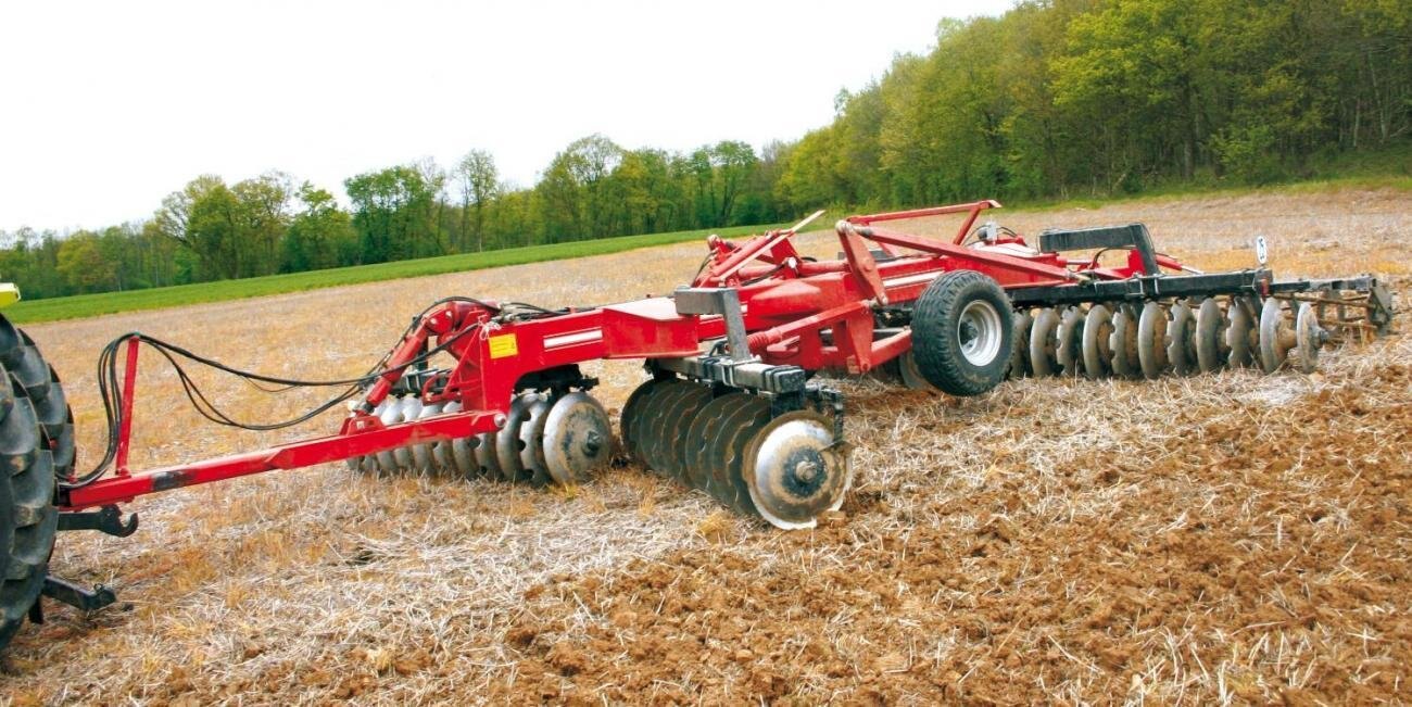 The X "SX Pro" disc harrow is intended for tractors from 110 to 180 hp. The range extends from 3.10 to 4.95m widths. With a disc weight of 110Kg (depending on version) the SX Pro has a strong penetrating power needed in difficult conditions such as dry summer stubble removal. Destruction of weeds, stopping capillary action to reduce moisture loss, self-seeding, management of organic residues and loosening roots are the main expectations of stubble removal tools. This range is characterized by synchrodisc system which adjusts the angle of the disc gangs synchronously. The SX Pro is equipped with the maxi'control system the tool is carried by the beam at the front and the roller at the rear. Load transfer is optimal. Depth control is precise and stability preserved. Very simple to use Prerating for transportation and the angle adjustment of the disk gangs front and back is carried out from the cab of the tractor by means of a single hydraulic cylinder. This commands the 4 disk gangs simultaneously. Offset front and rear disc gangs Labouring over the entire width of the tool.