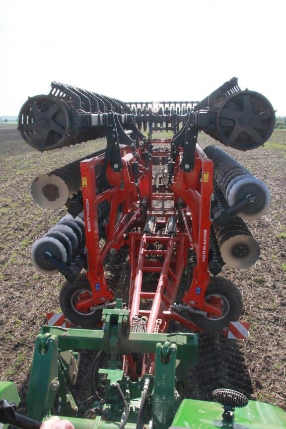 Trailed 3 section for tractors from 400 to 500 HP The 3 section trailed NORMANDIE is composed of a central frame and 2 lateral frames. The central axle(front discs and rolls) allows a better manoeuvrability on road and the headlands. This equipment range is designed for larger fields with higher working output, up to 14 ha per hour.