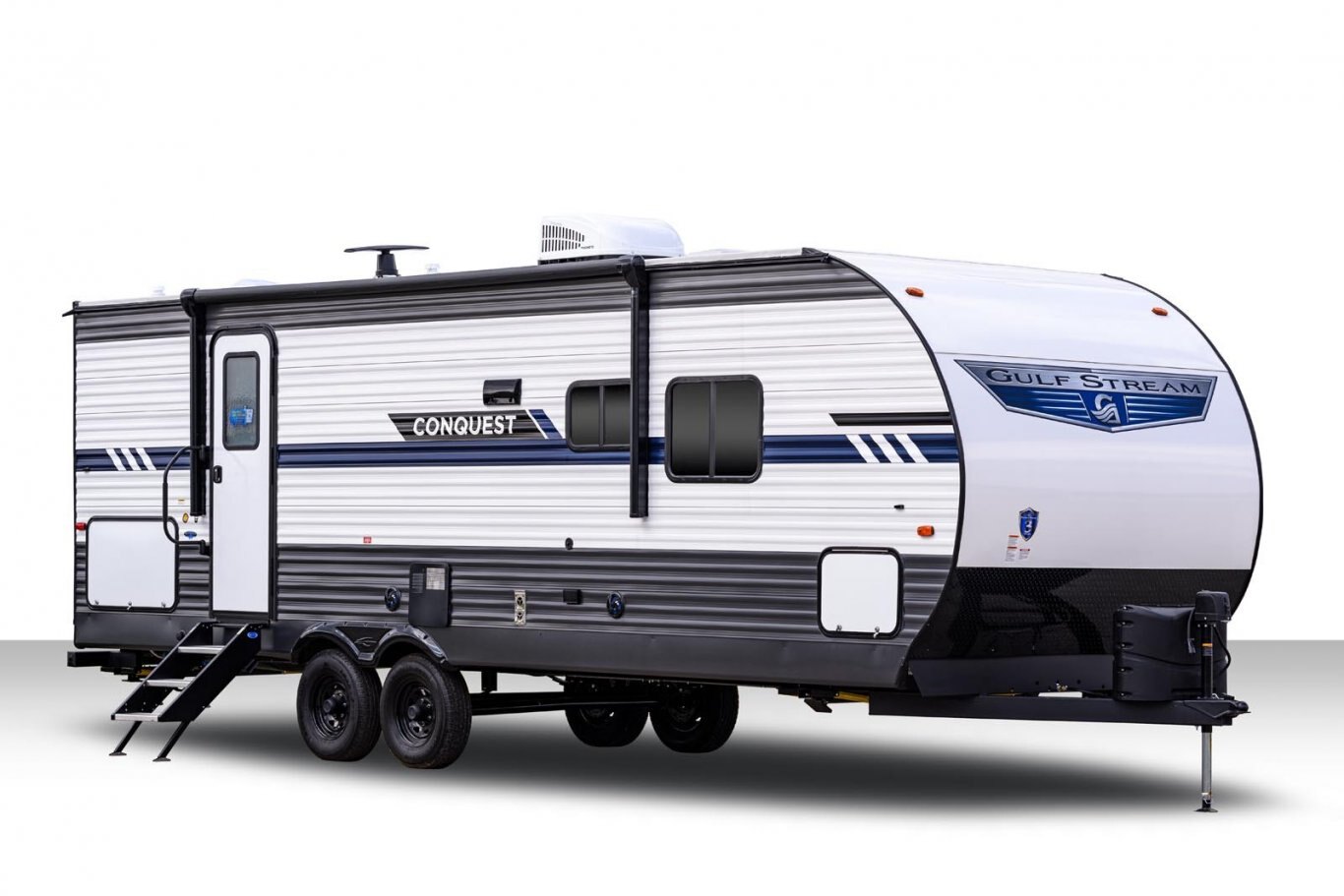 Our Conquest family of Travel Trailers includes a wide range of weights, lengths, and styles, ranging from 4,500 lbs to 10,500 lbs, 25 ft to 41 ft, with everything from compact weekenders to large destination trailers.  All feature our time-honored and camper-proven Uni-Body Construction, for rugged durability and long-lasting shelter.  As one of our "Main Line" brands, Conquest is considered the ideal combination of value and luxury for owners looking for high-value, low-priced family-oriented camping.