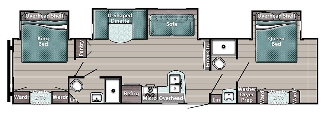 • Power Slide Out or Double Slide Out (see floor plans for specifics)