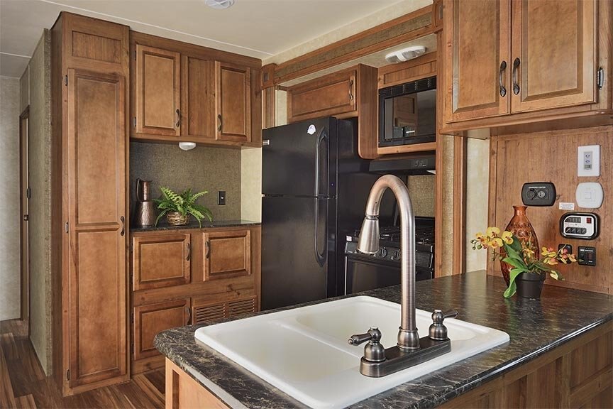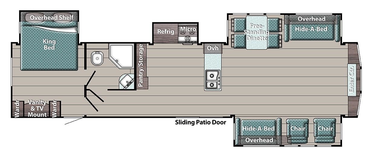 • Power Slide Out or Double Slide Out (see floor plans for specifics)