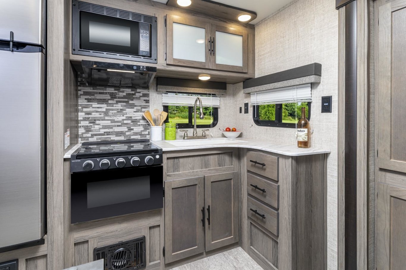 • Oversized tanks for fresh water (30 gal), grey water (36 gal) and black water (36 gal)