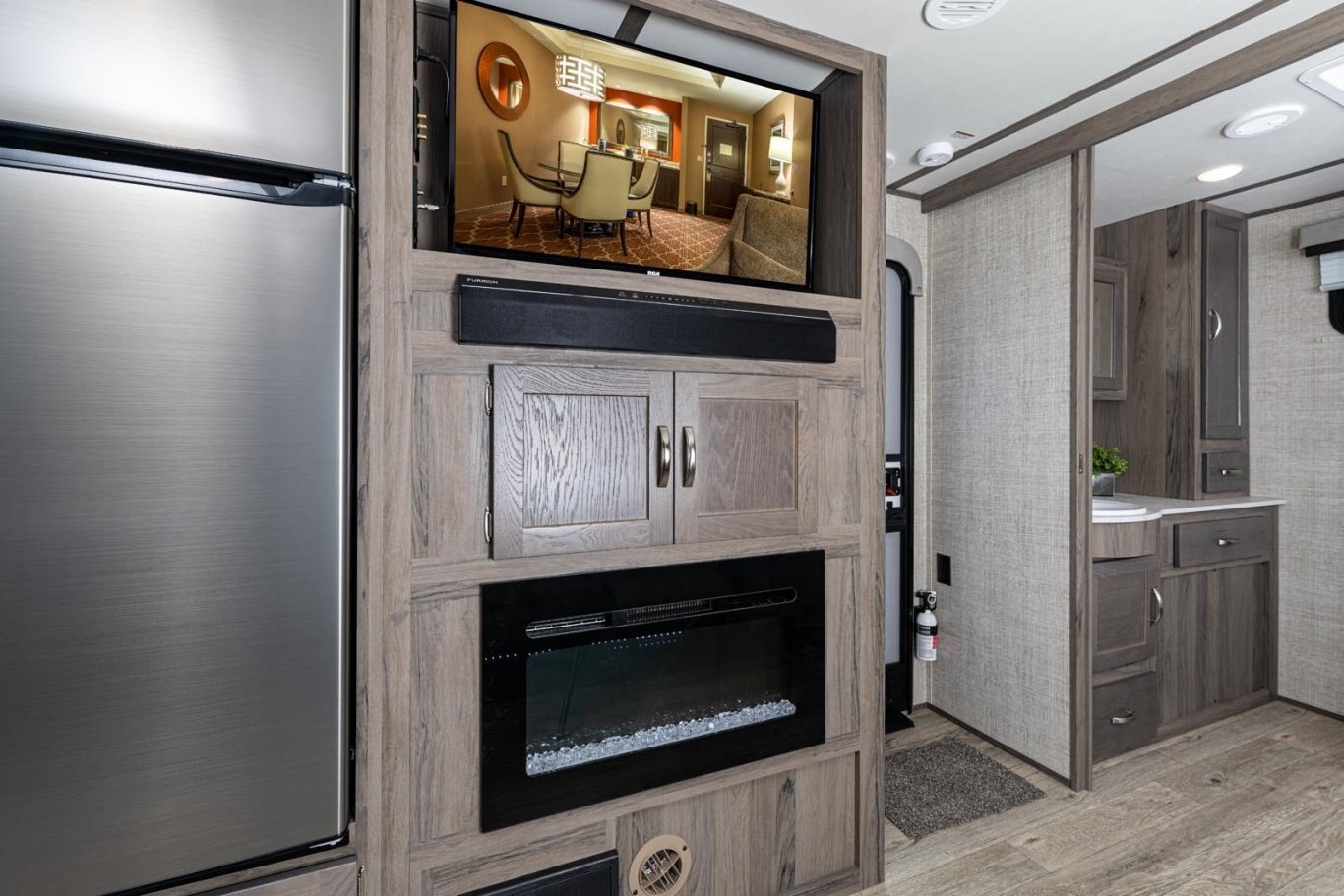 • Electric Awning w/LED Awning Light and Outdoor Speakers (Required)