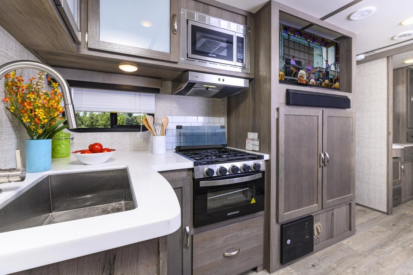 • Electric Awning w/LED Awning Light and Outdoor Speakers (Required)