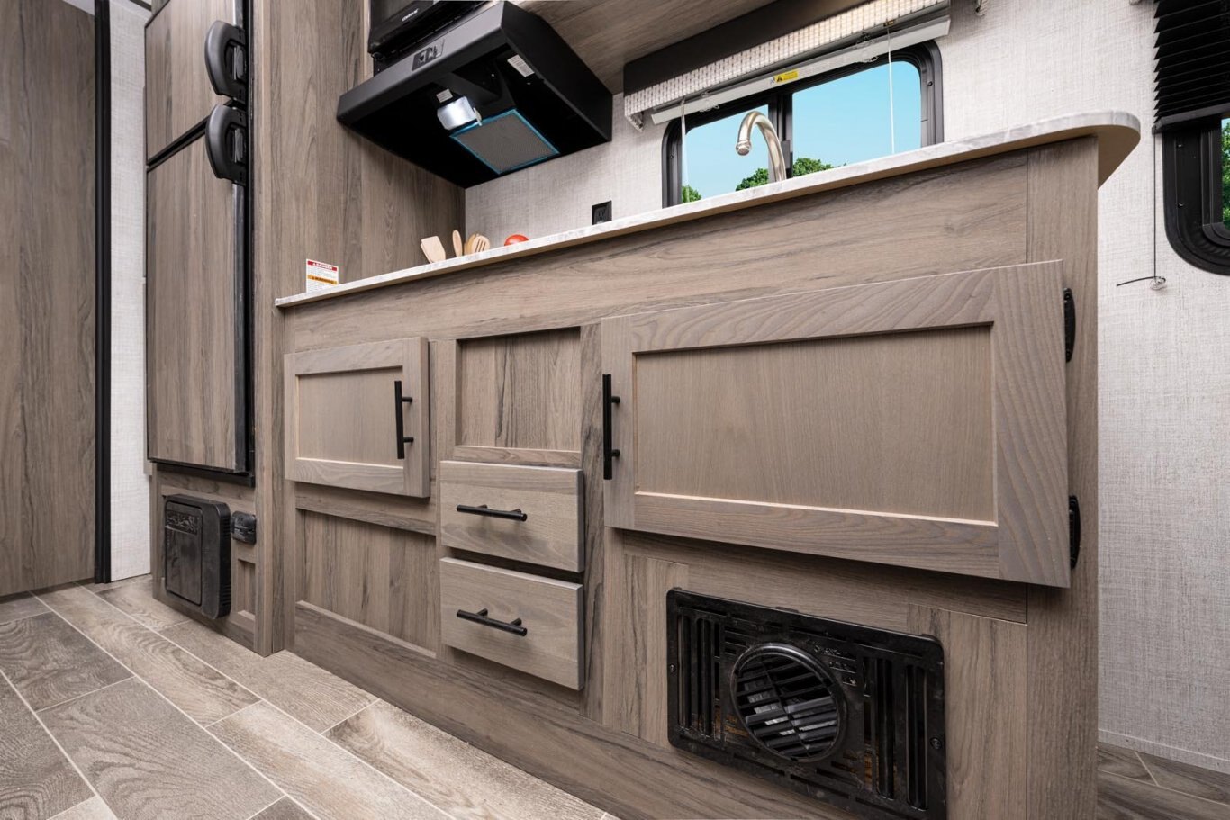 • Oversized tanks for fresh water (30 gal), grey water (36 gal) and black water (36 gal)
