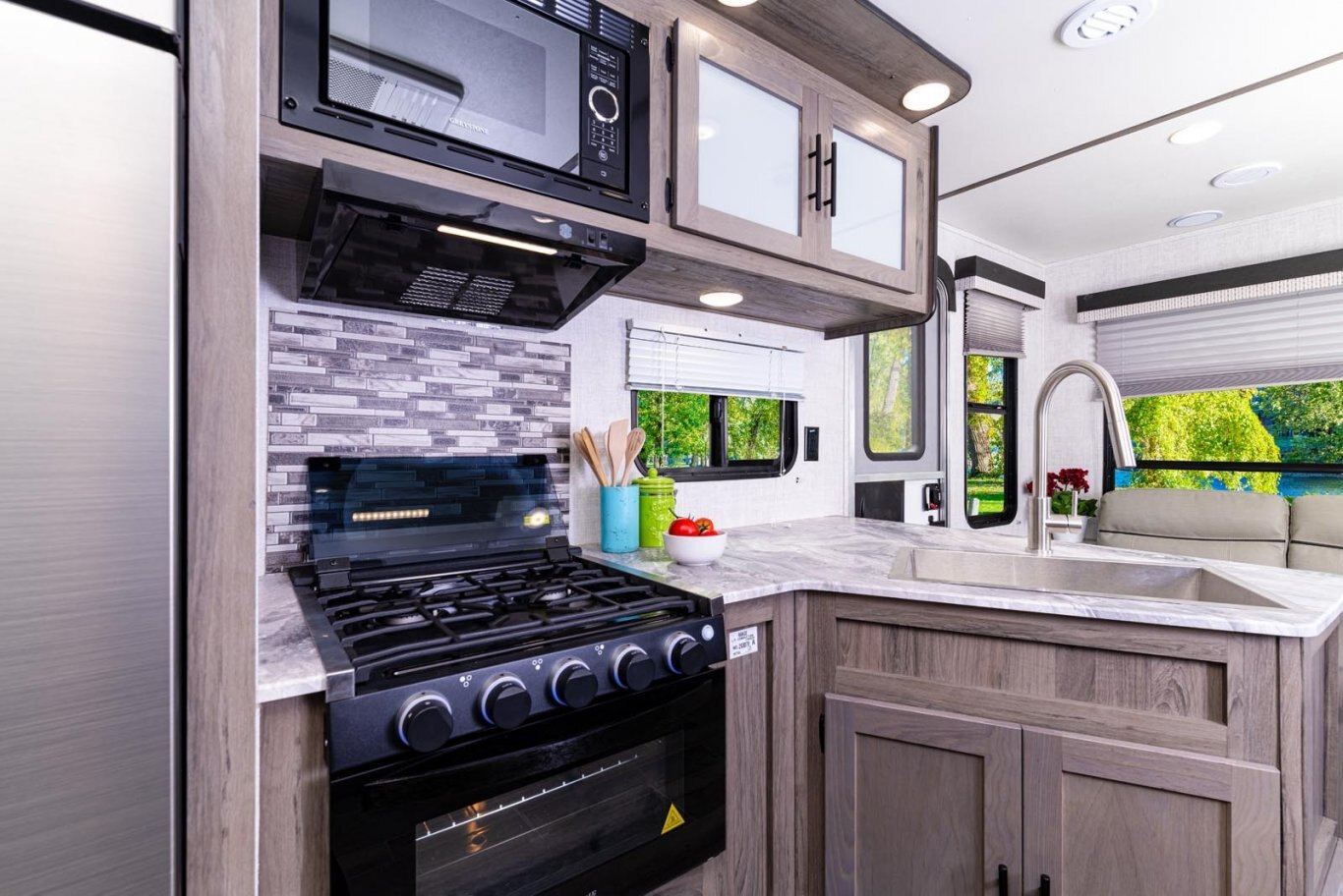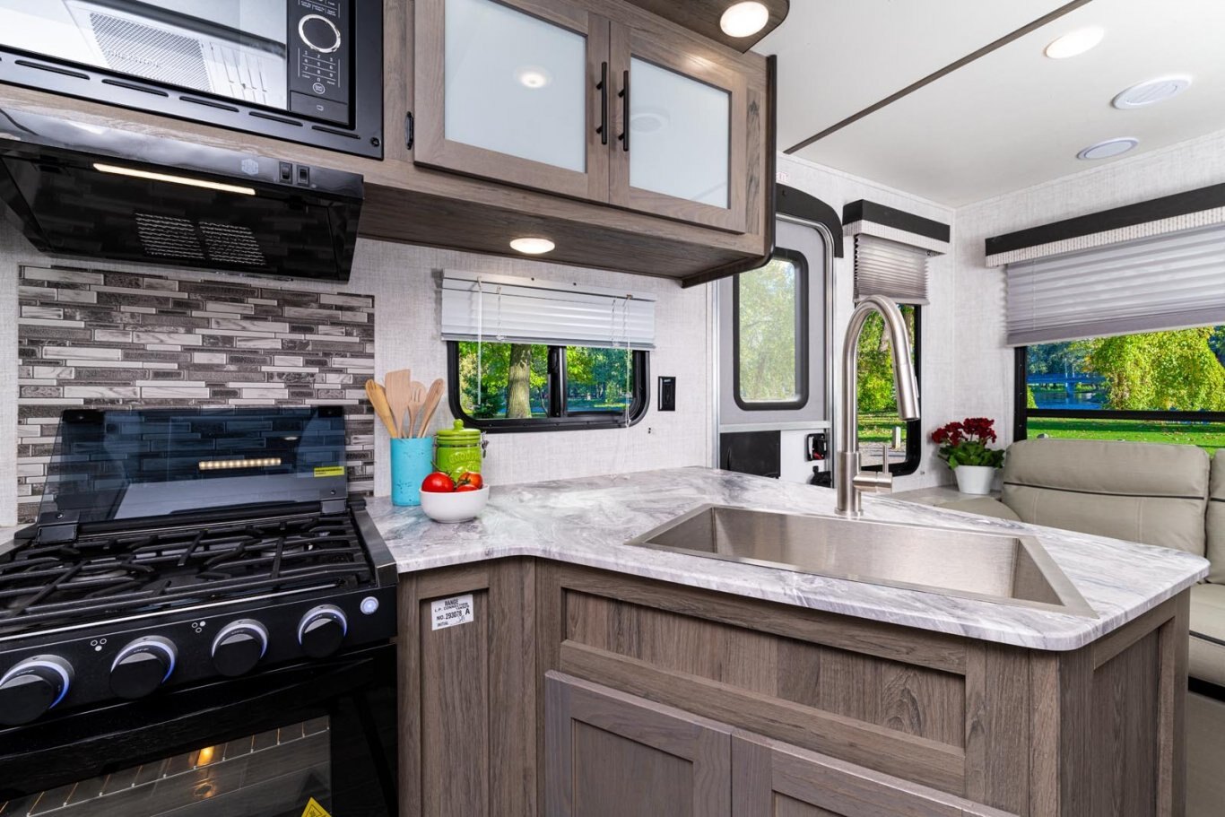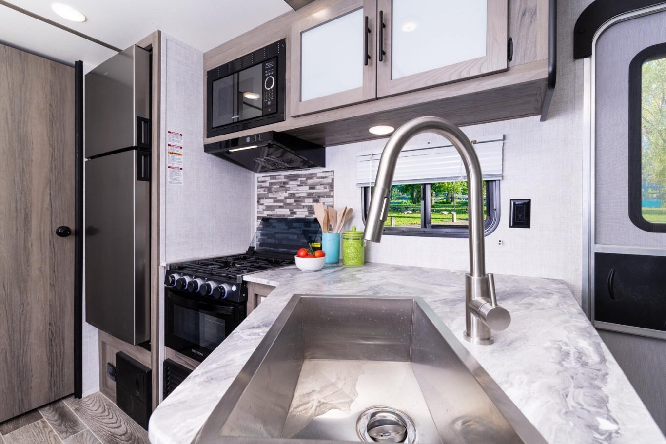 • Oversized tanks for fresh water (30 gal), grey water (36 gal) and black water (36 gal)