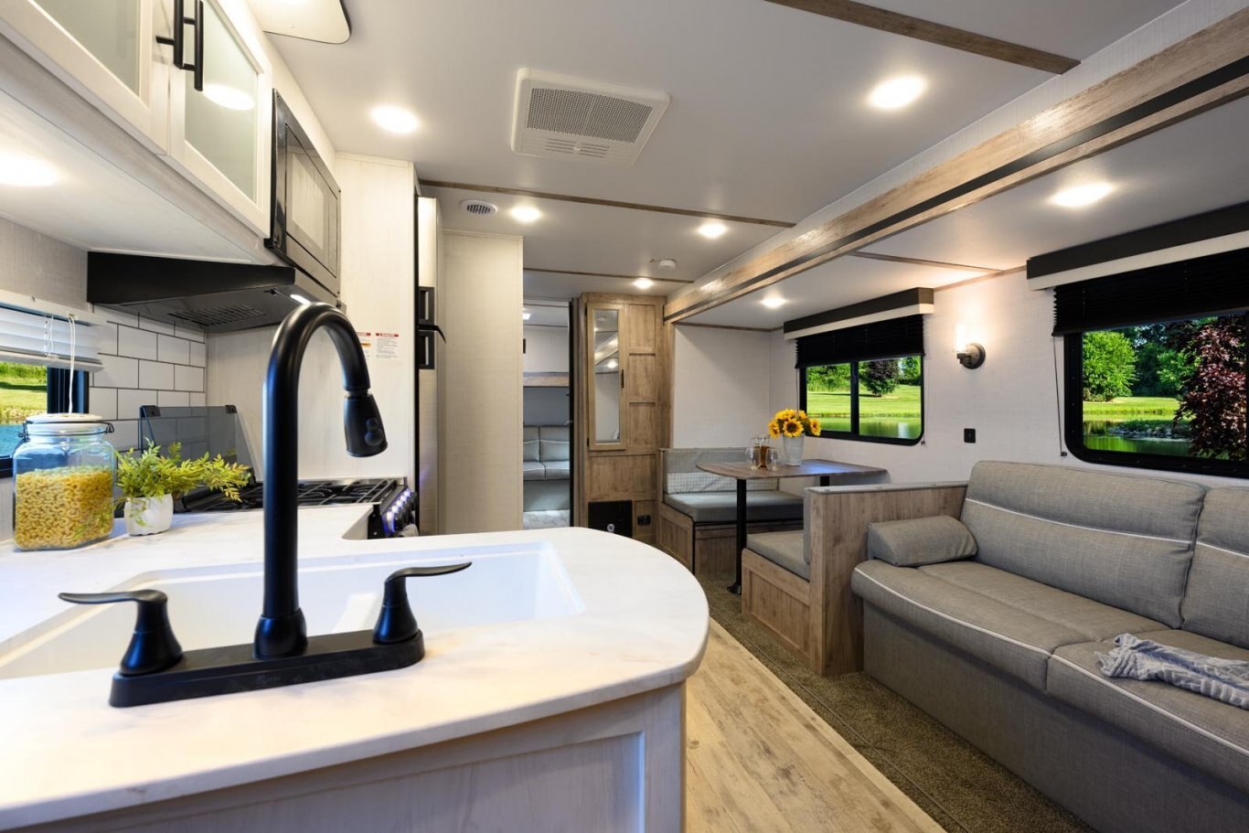 • Oversized tanks for fresh water (30 gal), grey water (36 gal) and black water (36 gal)