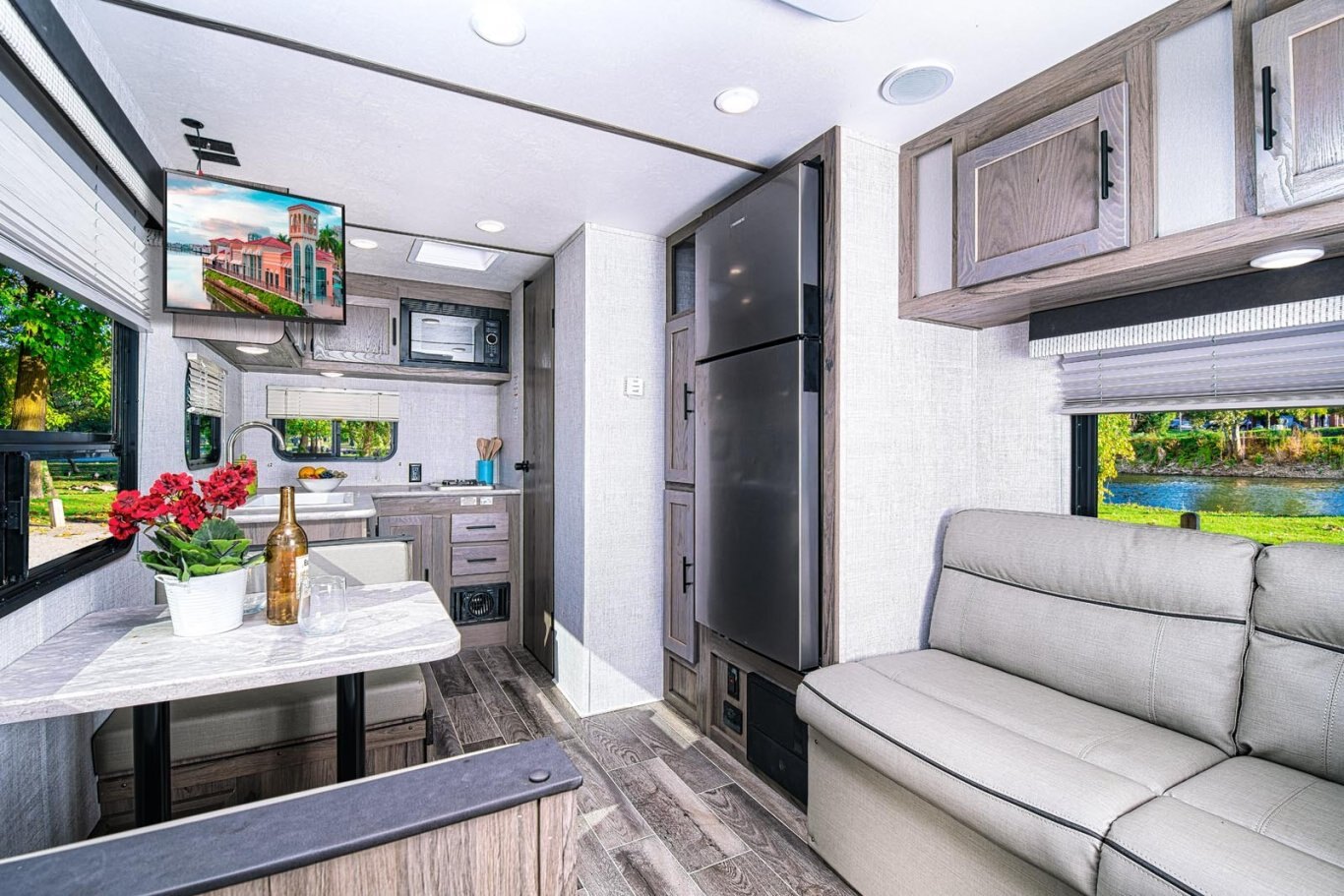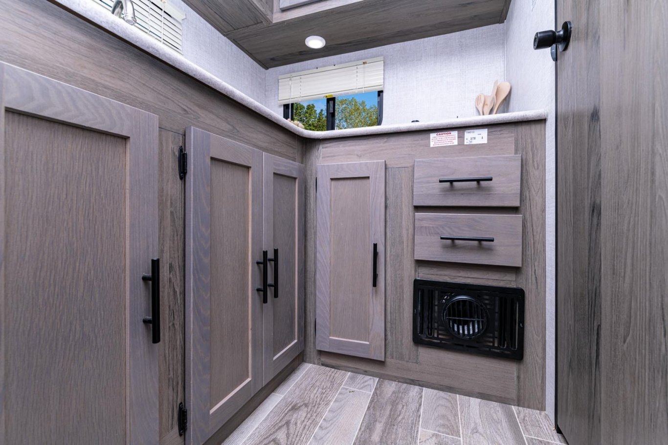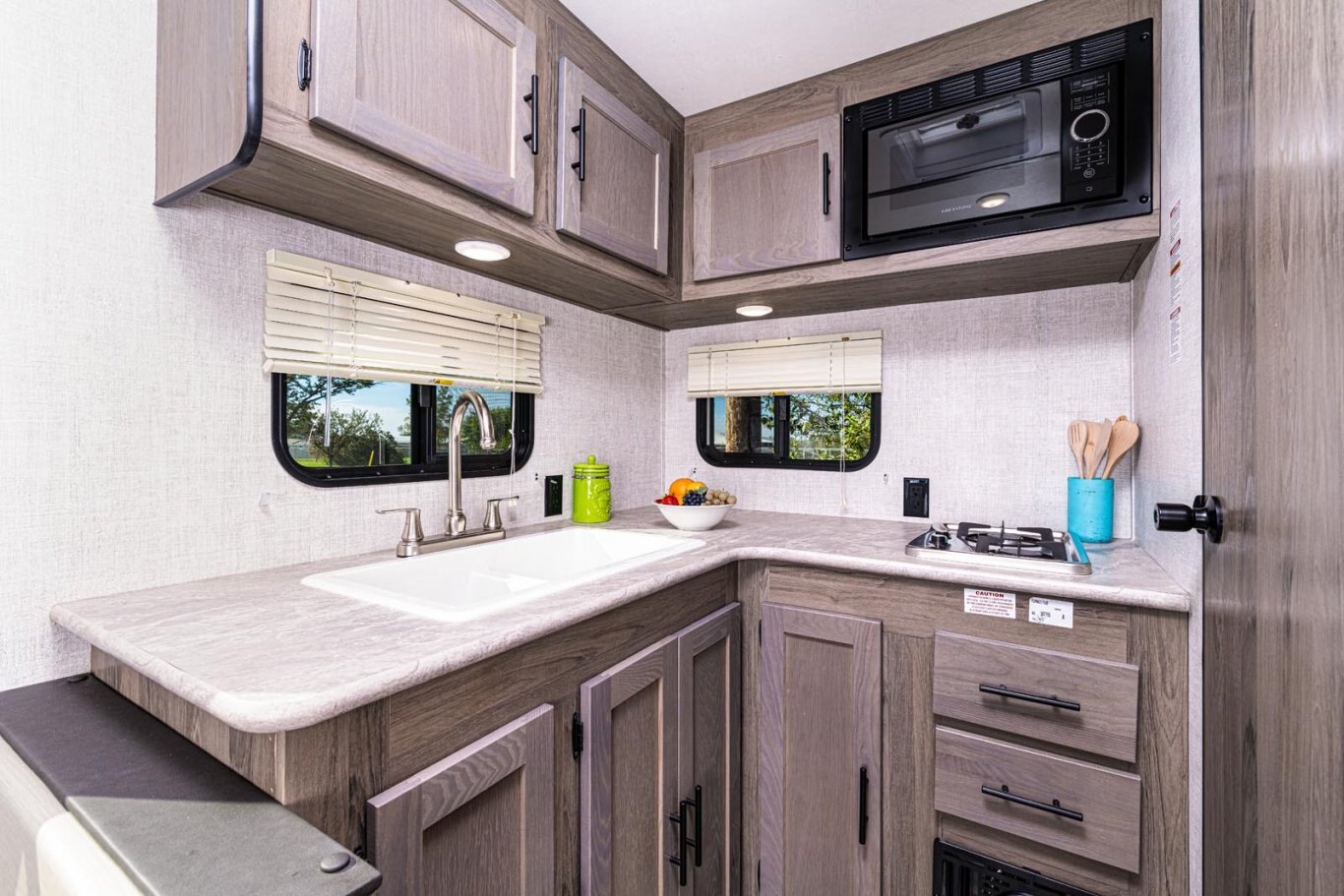 • Oversized tanks for fresh water (30 gal), grey water (36 gal) and black water (36 gal)