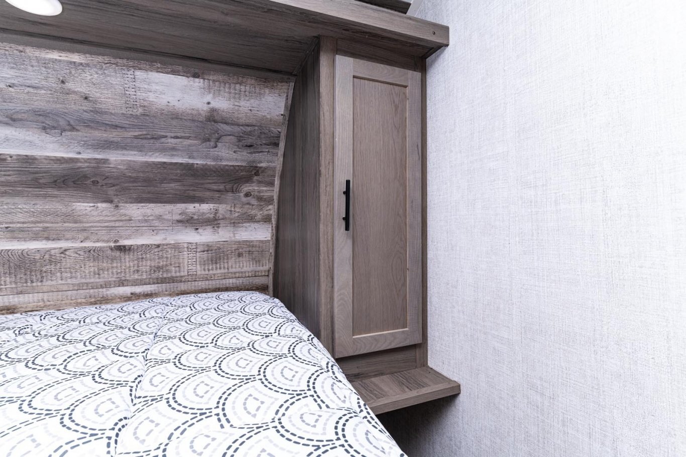 • Queen bed with innerspring mattress, under-bed storage