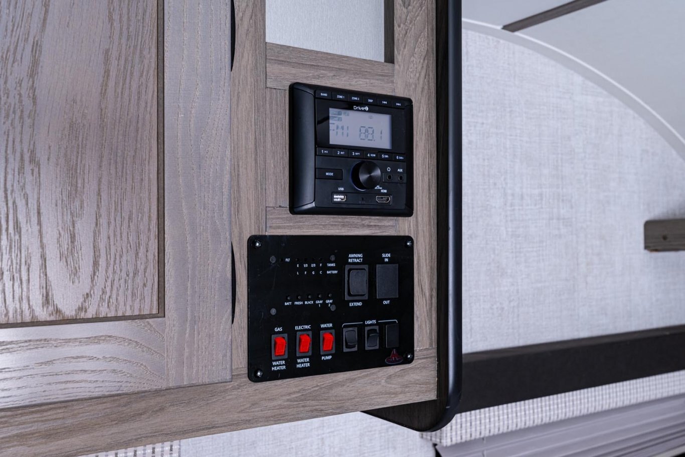 • Electric Awning w/LED Awning Light and Outdoor Speakers (Required)