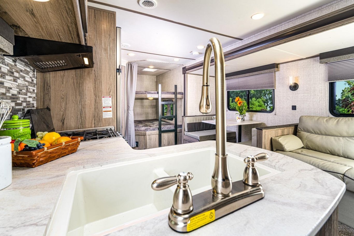 • Oversized tanks for fresh water (30 gal), grey water (36 gal) and black water (36 gal)