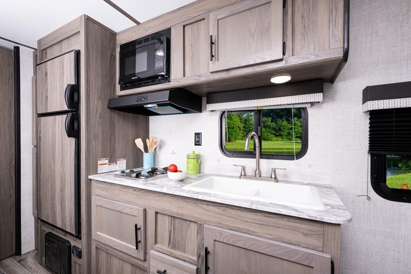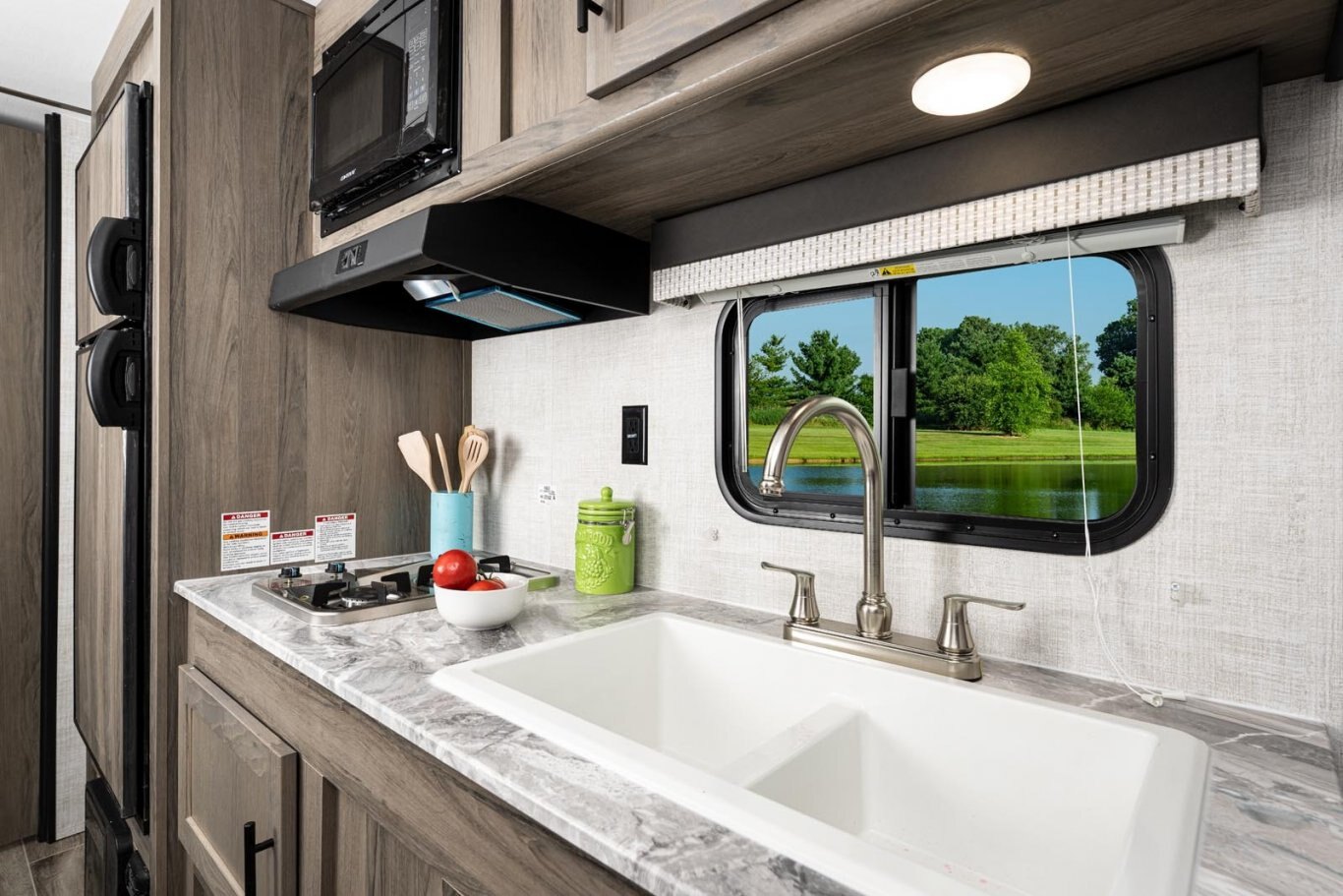 • Oversized tanks for fresh water (30 gal), grey water (36 gal) and black water (36 gal)