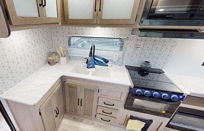 • Oversized tanks for fresh water (30 gal), grey water (36 gal) and black water (36 gal)
