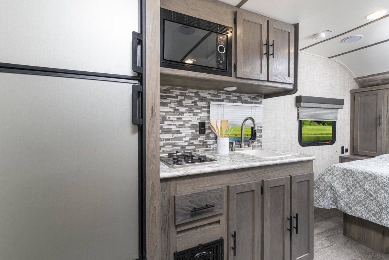 • Oversized tanks for fresh water (30 gal), grey water (36 gal) and black water (36 gal)