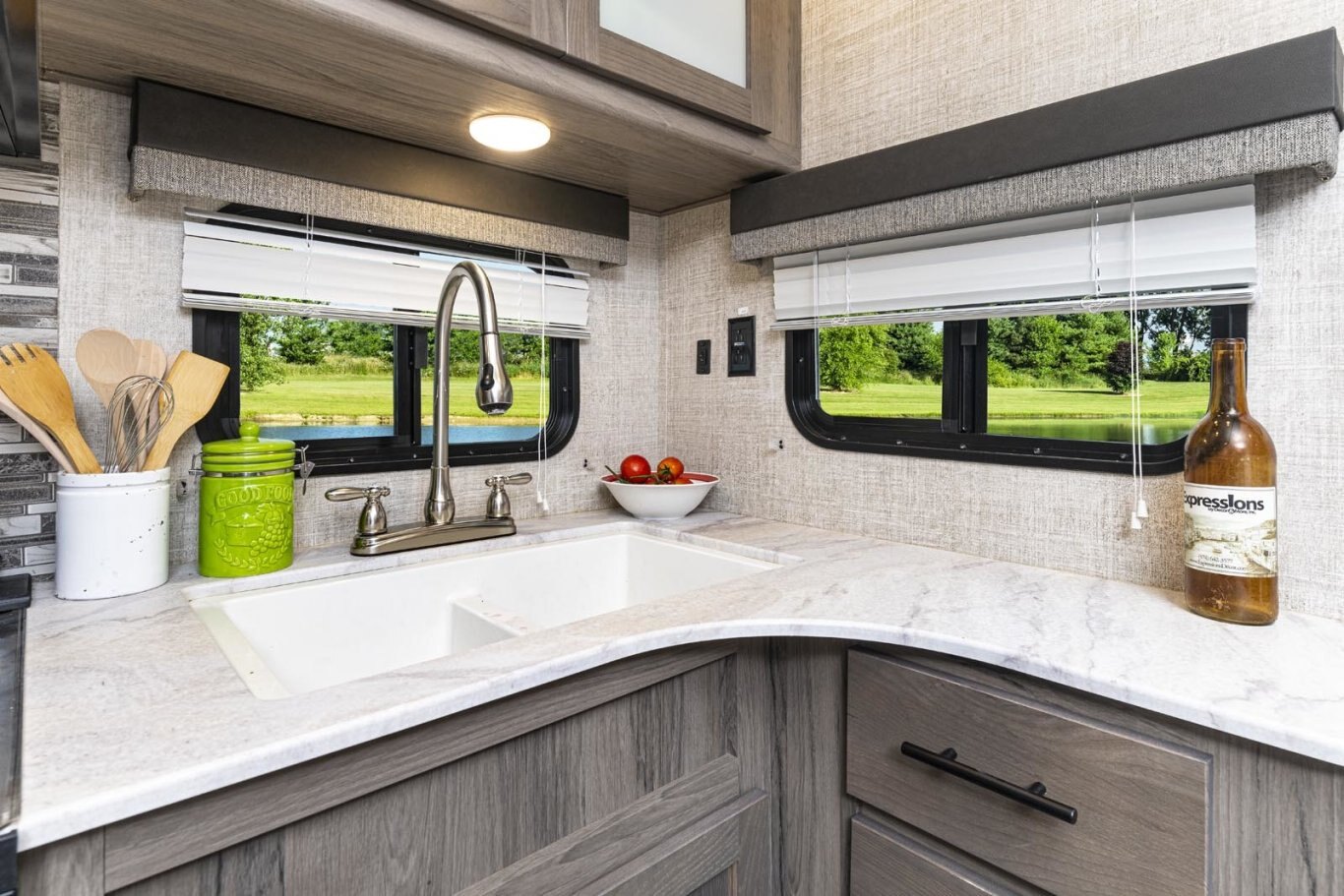 • Oversized tanks for fresh water (30 gal), grey water (36 gal) and black water (36 gal)