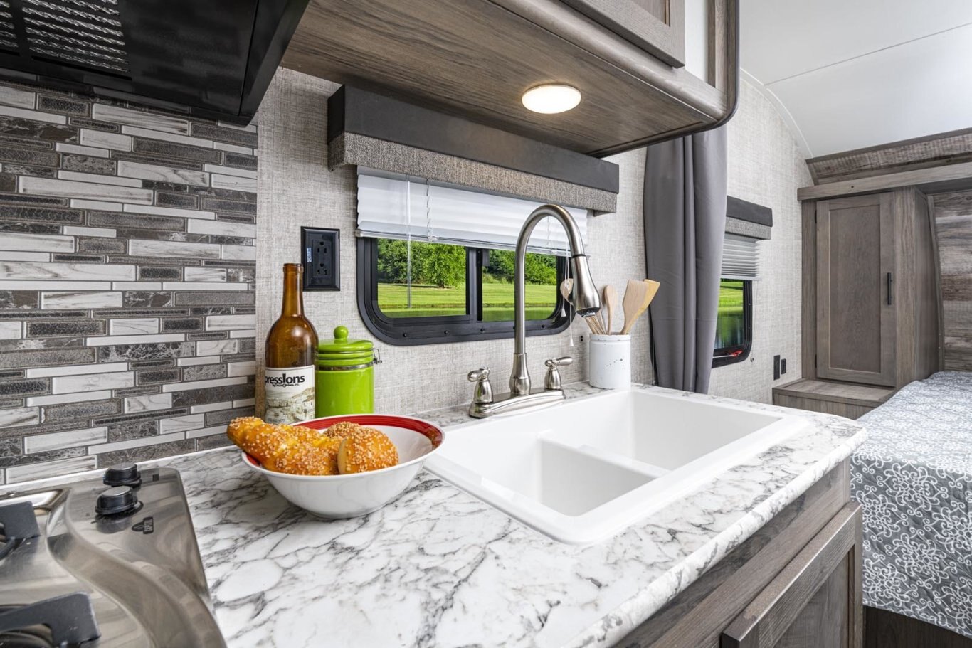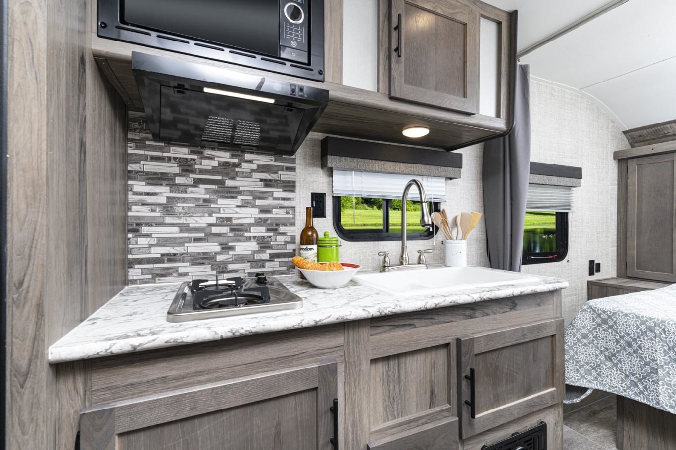 • Oversized tanks for fresh water (30 gal), grey water (36 gal) and black water (36 gal)