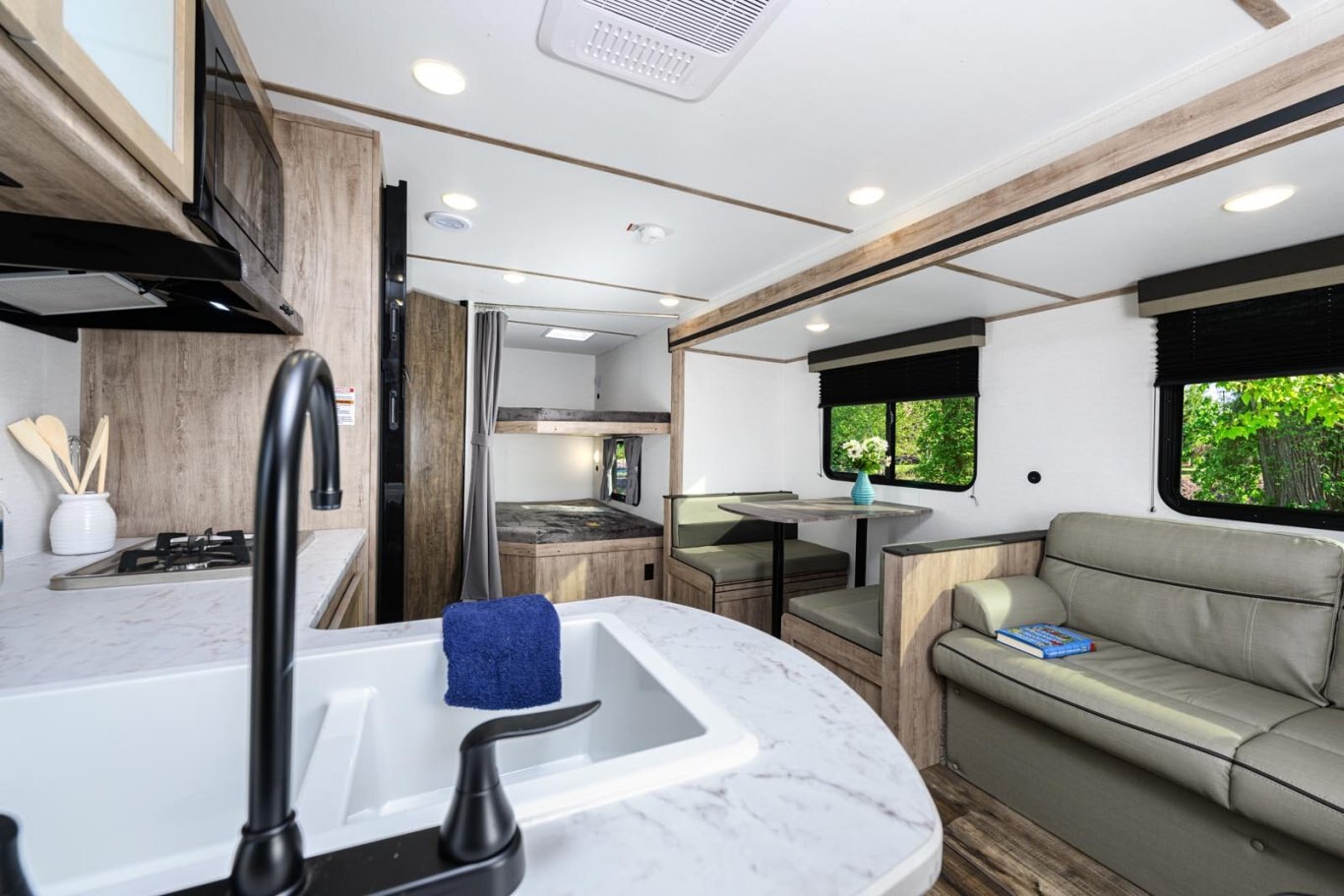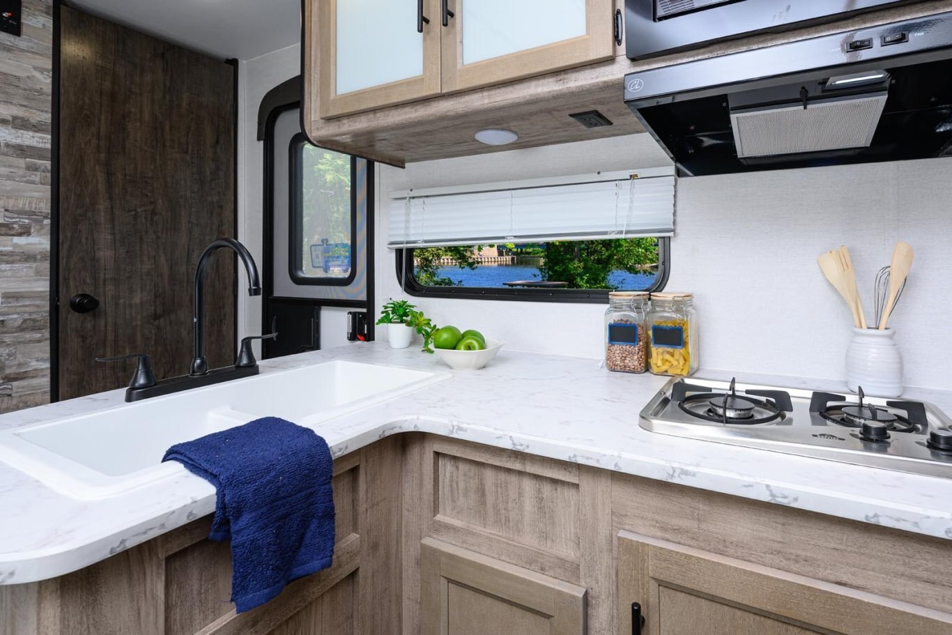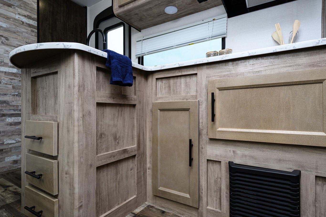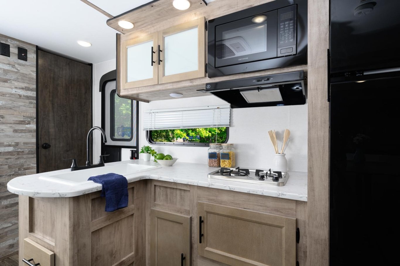 • Oversized tanks for fresh water (30 gal), grey water (36 gal) and black water (36 gal)