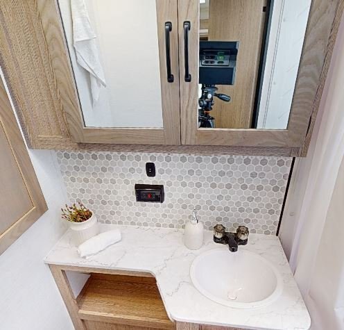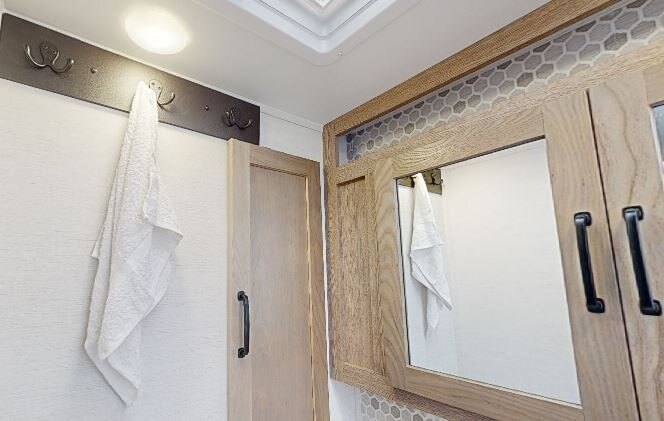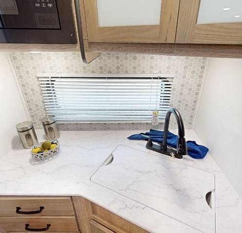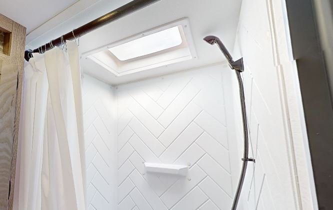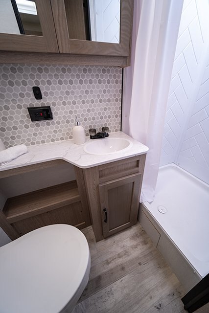 • Oversized tanks for fresh water (30 gal), grey water (36 gal) and black water (36 gal)