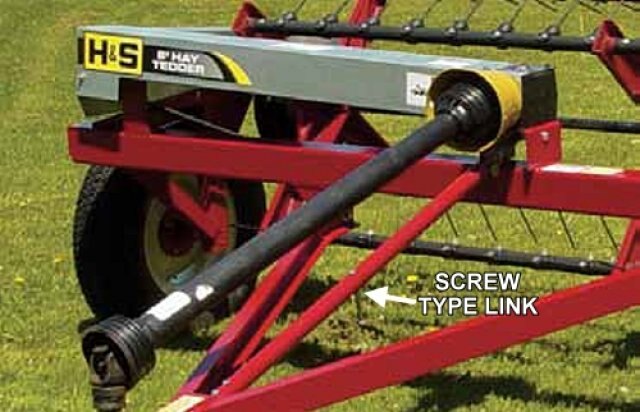 The screw type link (below the PTO Shaft) allows for handy and easy height adjustment. Cut hay that has been rained on can be tedded to speed up drying and avoid spoiled hay.
