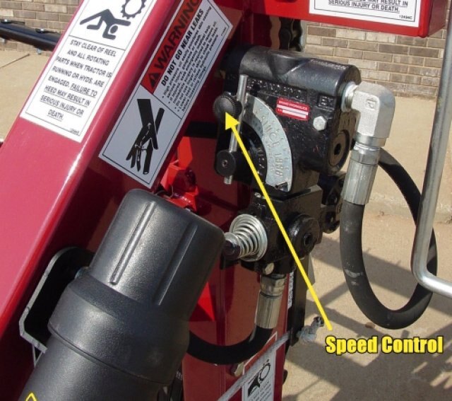 The speed of the tedder reel is hydraulically controlled. Manually adjust the control valve for crop and field conditions.