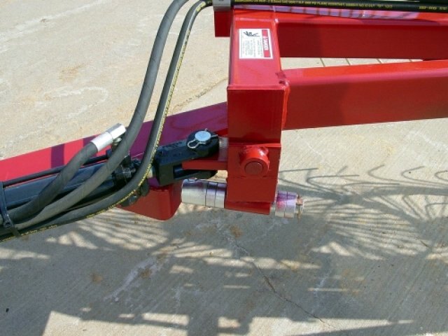 The hydraulic cylinder stops can be adjusted to limit the distance that the rake wheel arm swings out.