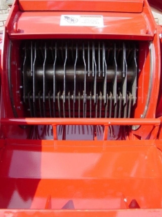 The self-contained hydraulic system includes a pulley-driven pump, cyclonic reservoir for maximum hydraulic cooling and a pressure relief valve. Two full length windows and a rear porthole window allow the operator to see feed levels.