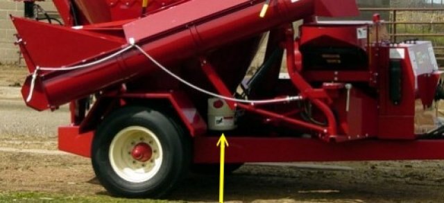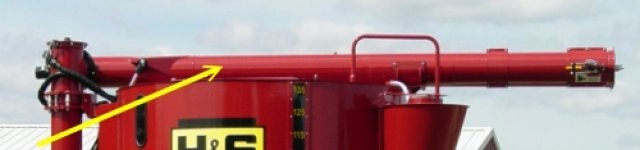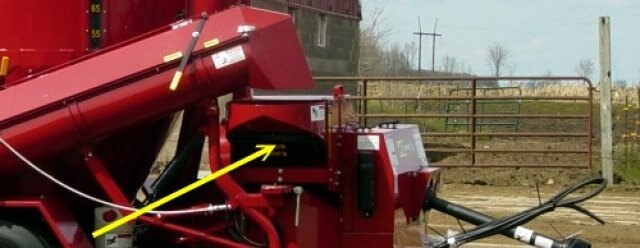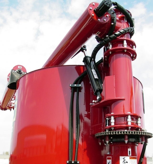 The 300 degree swing radius of the unloading auger allows repositioning of the discharge auger from one side of the machine to the other without moving the grinder-mixer.