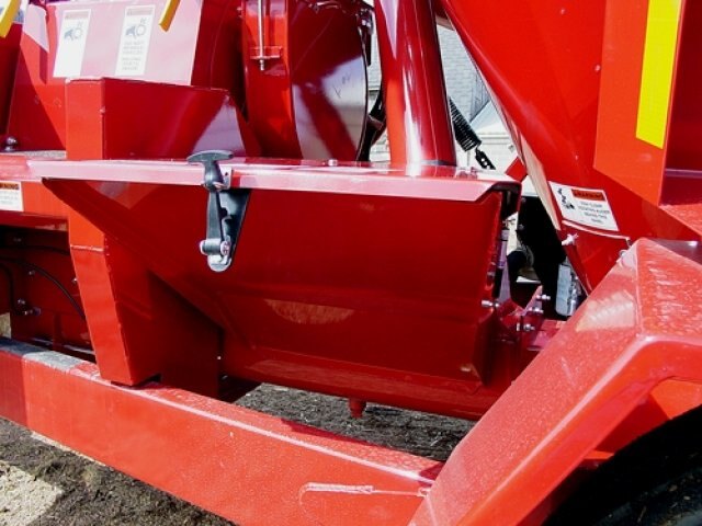 A slide style door provides easy opening for unloading. The automatic chain oiler system oils the drive chains when the discharged auger is raised.
