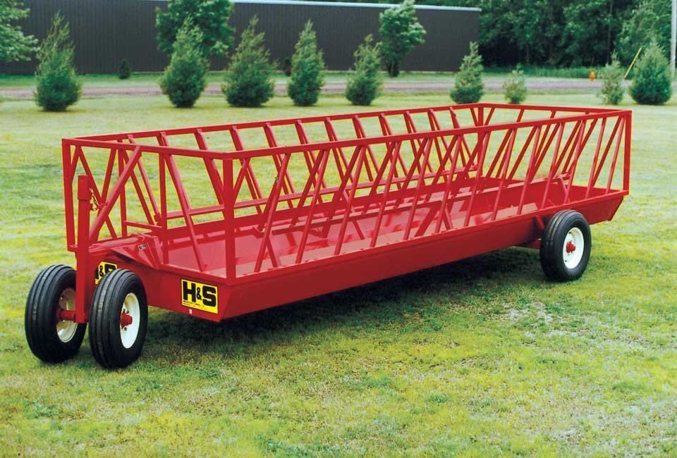 • H&S bunks feature a 90° turning radius with tricycle front end, 6 hole hubs and wheels, and quick hitch tongue.