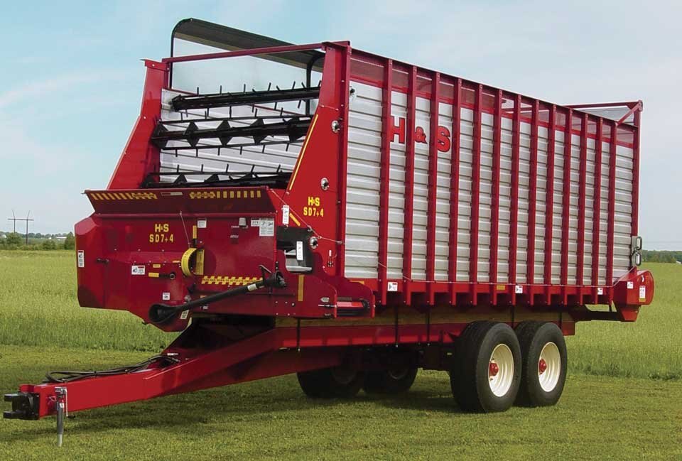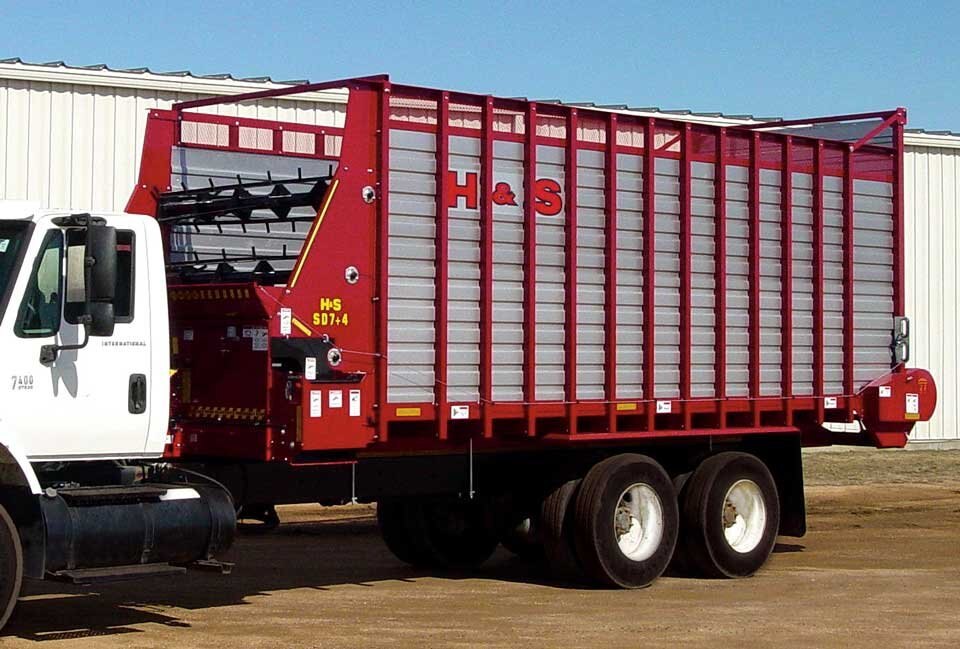A rear unload drive system with a quick change pin is standard on all Super Duty Forage Boxes.