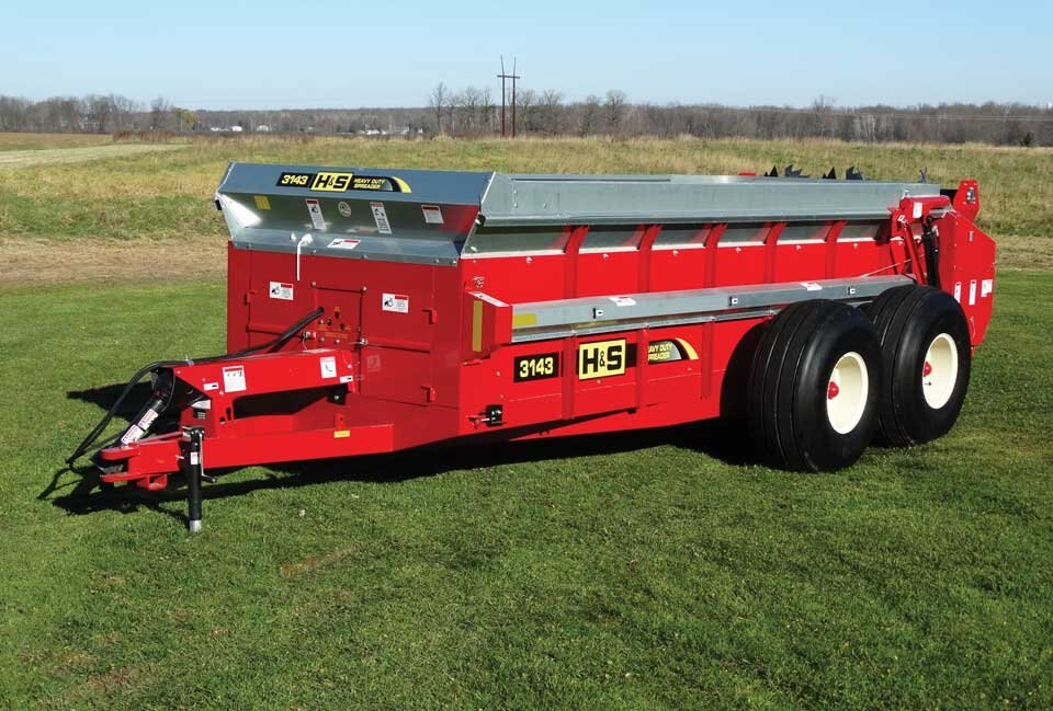 H&S Spreader model 3143 has a 29″ diameter beater with 14 replaceable beater paddles. The beater has two types of paddles, blunt for widespread and sharp ripper type for cutting and shredding. The beater side wiper blades are also standard equipment on Model 3143.