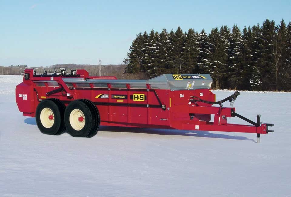 The 3156 manure spreader features a heavy duty 7″ structural steel channel iron frame with a double channel iron pole for superior strength and comes standard with variable speed hydraulic drive and constant velocity PTO.