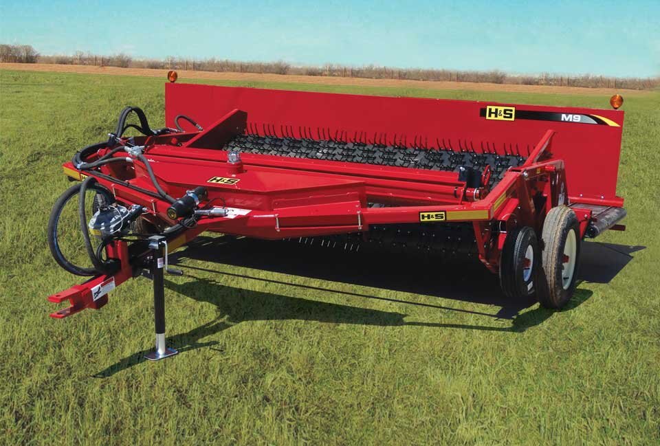 An optional self contained hydraulic drive kit with P.T.O. pump can be installed on the H&S M-9 Merger. This feature allows tractors with a minimum 5 G.P.M. hydraulic capacity and 1 remote to operate the merger.