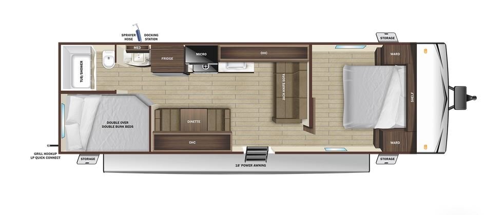 If you’re used to tent camping, take your camping to the next level with the Open Range Conventional Travel Trailer. Although it may seem tiny, the Open Range Conventional is mighty. It has a PVC roofing membrane with limited lifetime warranty, residential vinyl flooring throughout (including flush floor slideouts), main entry solid swing-down step, seamless pressed membrane countertops and the impressive Magnum™ Roof System.