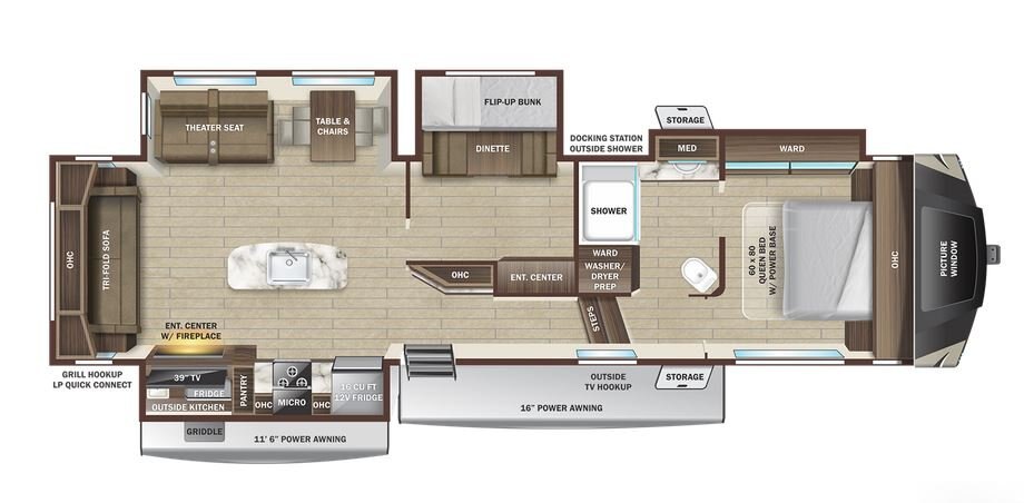 • TravelLINK® - Smart RV system that allows for Bluetooth® control of awnings, lighting, slideouts, heating, cooling and more