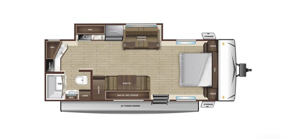 If you’re used to tent camping, take your camping to the next level with the Open Range Conventional Travel Trailer. Although it may seem tiny, the Open Range Conventional is mighty. It has a PVC roofing membrane with limited lifetime warranty, residential vinyl flooring throughout (including flush floor slideouts), main entry solid swing-down step, seamless pressed membrane countertops and the impressive Magnum™ Roof System.