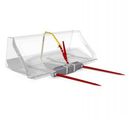 - Same as single bucket spear but with extra tine to handle large square bales