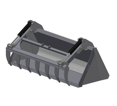 Compact Scrapple Grapple Bucket (Skidsteer) 3/16" material, 1/4" end plates 3/4 X 4 bevelled cutting edge Single grapple arm 26" overall height...