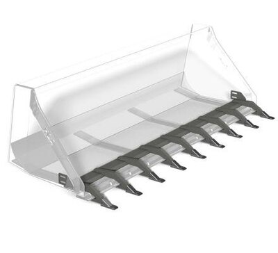 Low Profile Skidsteer Bucket c/w Digging Teeth - REGULAR DUTY Regular duty 3/16" material, ¼" end plates ¾ X 4 bevelled cutting edge...