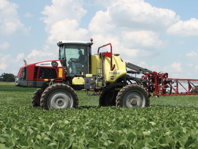 | PRESIDIO delivers class leading field performance and floatation. The 700 gal. main tank and 70 gal. flush tank integrated into the chassis, provides a low center of gravity and excellent weight distribution. EAGLE booms from 75 to 90 feet produce high work rates and make spraying fast and efficient. 4WD, 3-speed hydrostatic transmission with cruise control is standard and is powered by Deutz 6 cylinder 173.5 HP engine. Built for demanding service PRESIDIO optimizes design strength and weight distribution. Air-bag suspension provides superb comfort & ride and offers excellent crop clearance. HARDI fluid system from tank to nozzle delivers precision application to the target every time. It is ideally suited to row-crop and smaller cereal farming applications. |