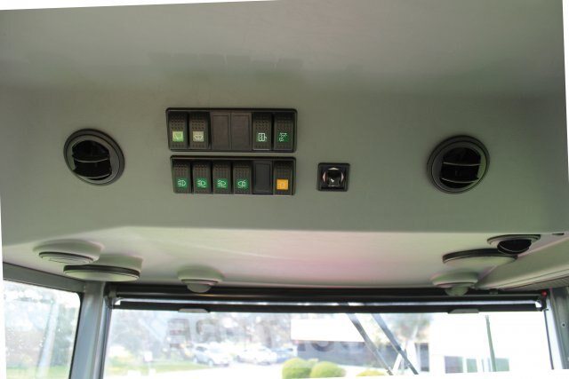 Secondary control switches for lighting and windscreen wiper functions are grouped on the console just above the operator's head, along with the electrically operated external rear vision mirrors. Air conditioner outlets are located throughout the cab. |
