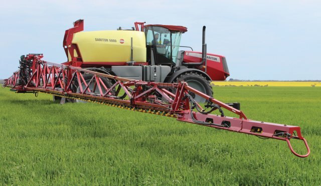 | The SARITOR with infinitely variable four-wheel drive hydrostatic transmission delivers the traction to stay on top of the spray program. SARITOR is HARDI-built from the ground up. It offers 1100 & 1300 gallon tank capacities with 90 to 132 foot TERRA FORCE booms, setting a new standard in broad acre spraying. Crop clearance is 54 inches and the track width can be hydraulically adjusted from 120 to 160 inches providing a large stable platform for boom stability. Four ride level air bag suspension elements and hydraulic shock absorbers provide smooth spray performance and exceptional operator comfort. A sturdy hydraulic fold down ladder and wide walk way with safety hand rails allow easy access to the cab. The cab is generous and uncluttered with ample room for the operator and trainer. Visibility in all direction is exceptional for this level of sprayer. |