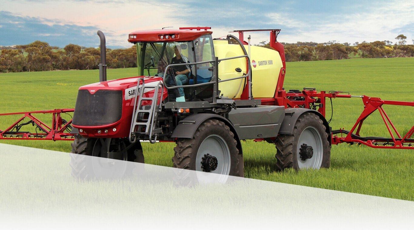 In front of the fieldThe SARITOR with infinitely variable four-wheel drive hydrostatic transmission delivers the traction to stay in front of the sprayer range. SARITOR is HARDI-built from the ground up and sets new standards in broad acre spraying. It offers a 1,300 gal. tank capacity with 88 - 132 ft. TERRA FORCE BOOM or an ALU FORCE 120 - 132 ft. option. Crop clearance is 54 in., and the track width can be hydraulically adjusted from 120 - 157.5 in. providing a large stable platform for boom stability. |