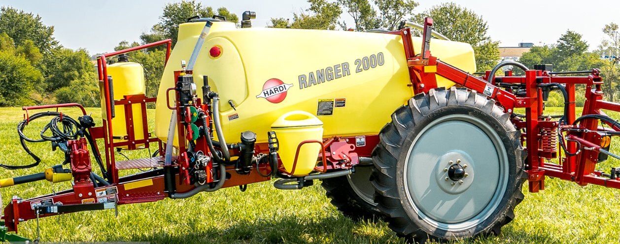 Tank: 550 gal. designed for optimal stability and the lowest residue. Sturdy 3/8" thick main tank. 2" Nurse Tank QuickFill with suction filter (optional on the Model 550) Cyclone self-cleaning filter (Optional on RANGER 550) Pump: The HARDI Diaphragm pump is a reliable, high capacity and easy to service with bottom suction from deep sump and is standard on the Ranger 2000. Options for the Ranger 550 are the Ace 206 hydraulic centrifugal or the Ace 150 PTO belt drive centrifugal pump. Top Operated tank drain High Visibility dry sight gauge (Model 550 equipped with a wet sight gauge) Work platform w/foot step Controller: HC 5500 (Optional on RANGER 550 & 2000) 5-gallon clean water dispenser EAGLE booms: Simple and strong booms with hydraulic lift and fold. Single 20" spaced nozzle bodies w/ISO Mini Drift (Air Inclusion) nozzles |