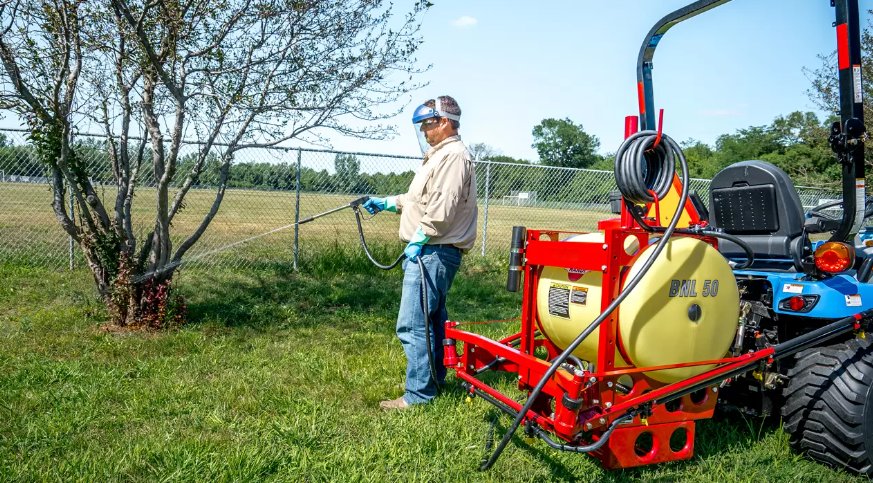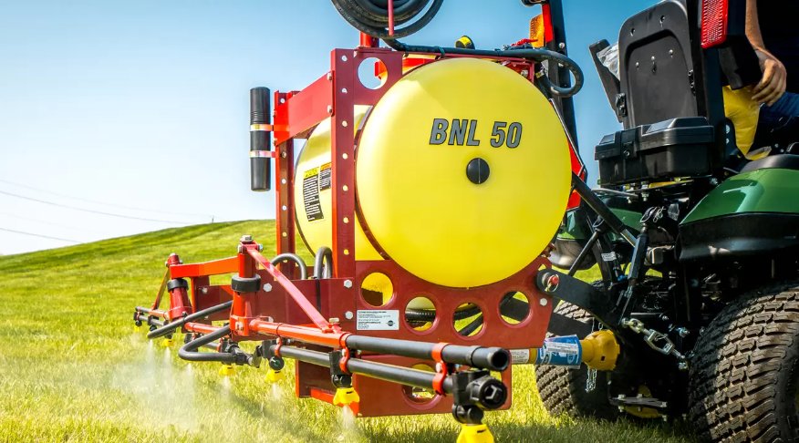 BNL 50 standard equipment includes HARDI 503 diaphragm pump with PTO drive, M70 spray controls and spray gun with 40’ of 1/2” hose and hose wrap. An optional 14’ horizontal fold boom, HARDI 110° ISO Snap Fit nozzles are available.