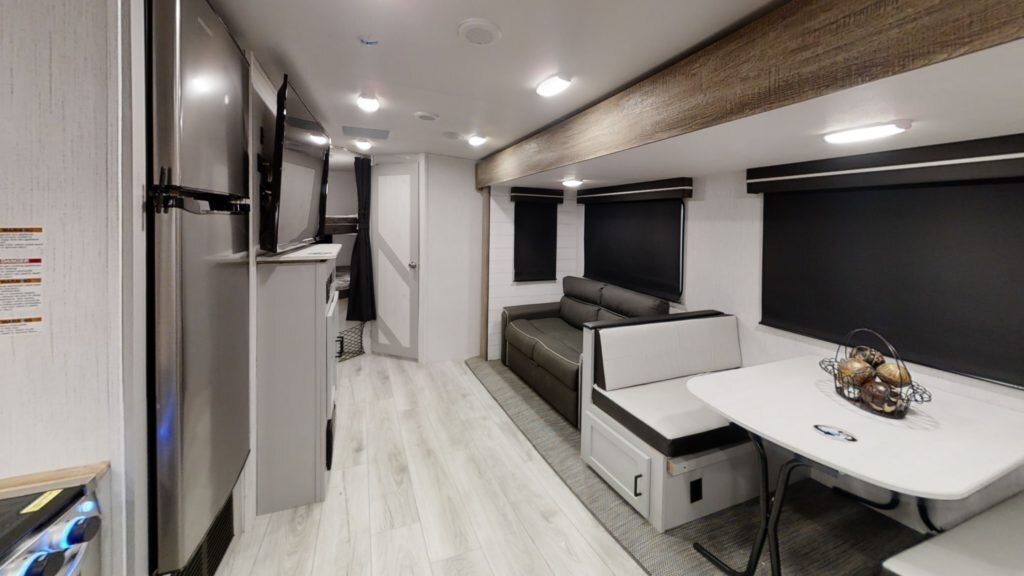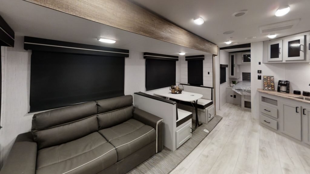 No matter which direction you’re headed, this spacious, innovative travel trailer gets you there with ease. With an open concept and oversize windows, there’s room enough for the whole family. The EZ Sweep carpet free slide room makes cleaning a snap. And the all new Super King Kong sized storage space holds everything an active family needs.